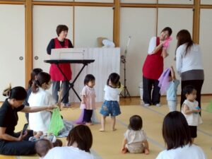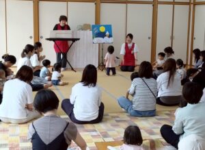 他にも、ふれあい遊びやリズム遊びなど盛りだくさん!笑顔いっぱいの音楽あそびでした~
