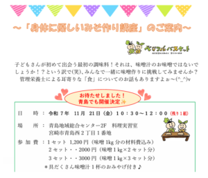 R7年度11月開催!身体に優しい味噌作り講座のご案内(残り1組)
