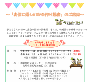 詳しくはチラシをご覧ください→2026.1月2月 味噌作り講座案内文書3