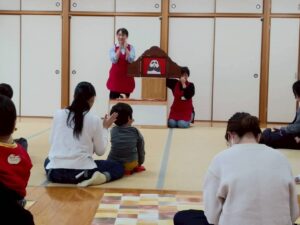 絵本のほか、わらべうたも皆さんで楽しみました♪ ゆったりとしたリズムでユラユラ揺らしてもらい